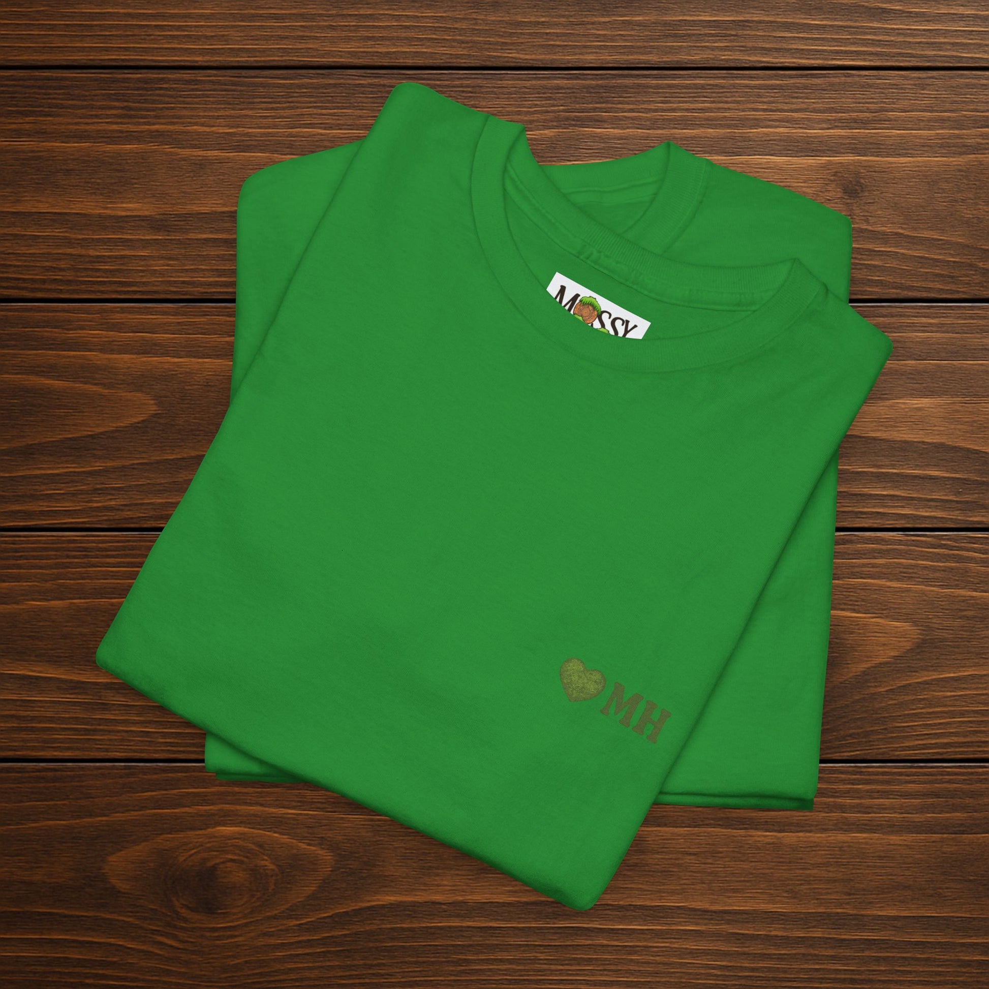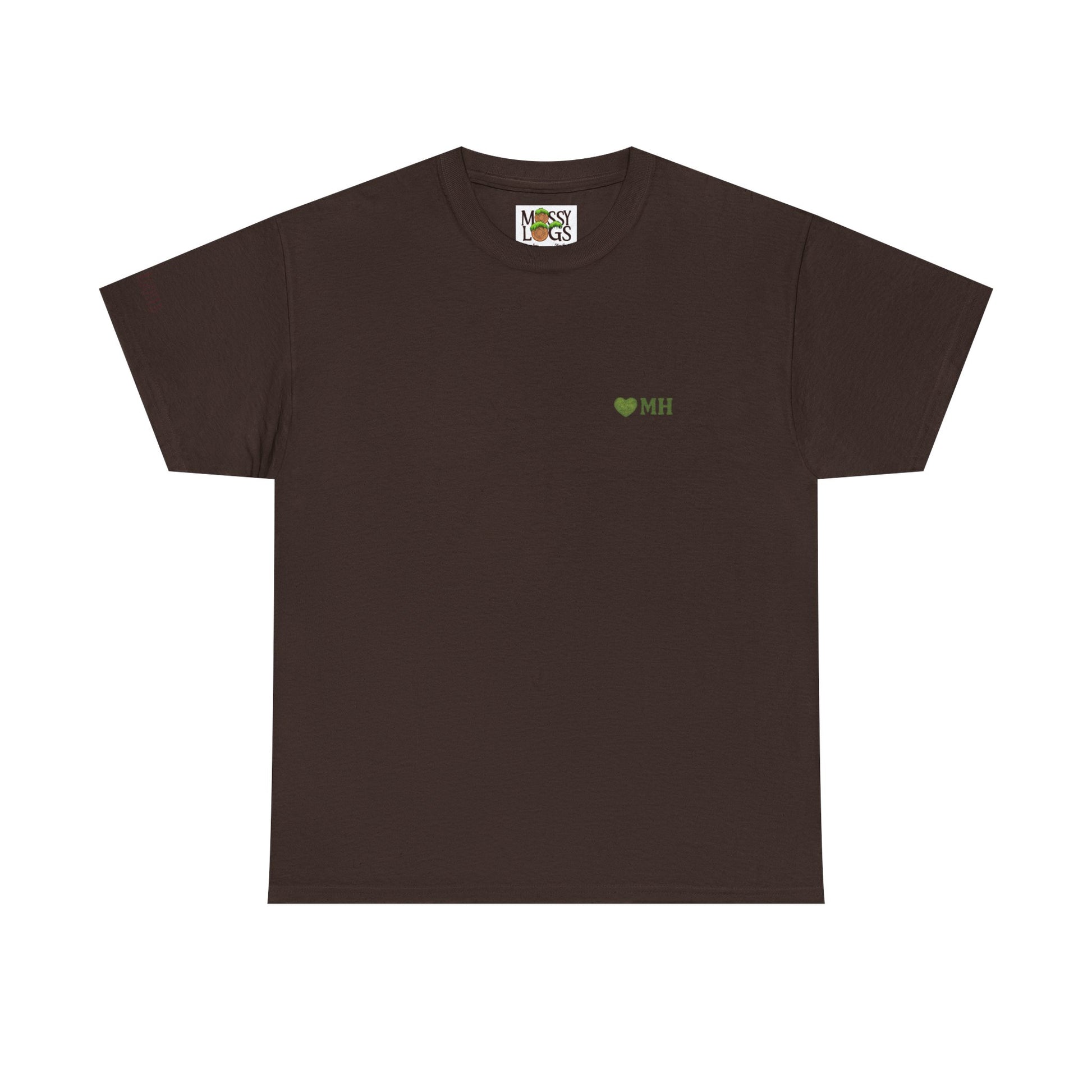 The Moss Hugger tee is a cozy tribute to those quiet, grounding moments in nature — when the only thing that makes sense is wrapping your arms around a tree. With a subtle “MH” heart logo on the front & a bold back print of mossy arms embracing a towering tree, this shirt is soft, symbolic & rooted in love.