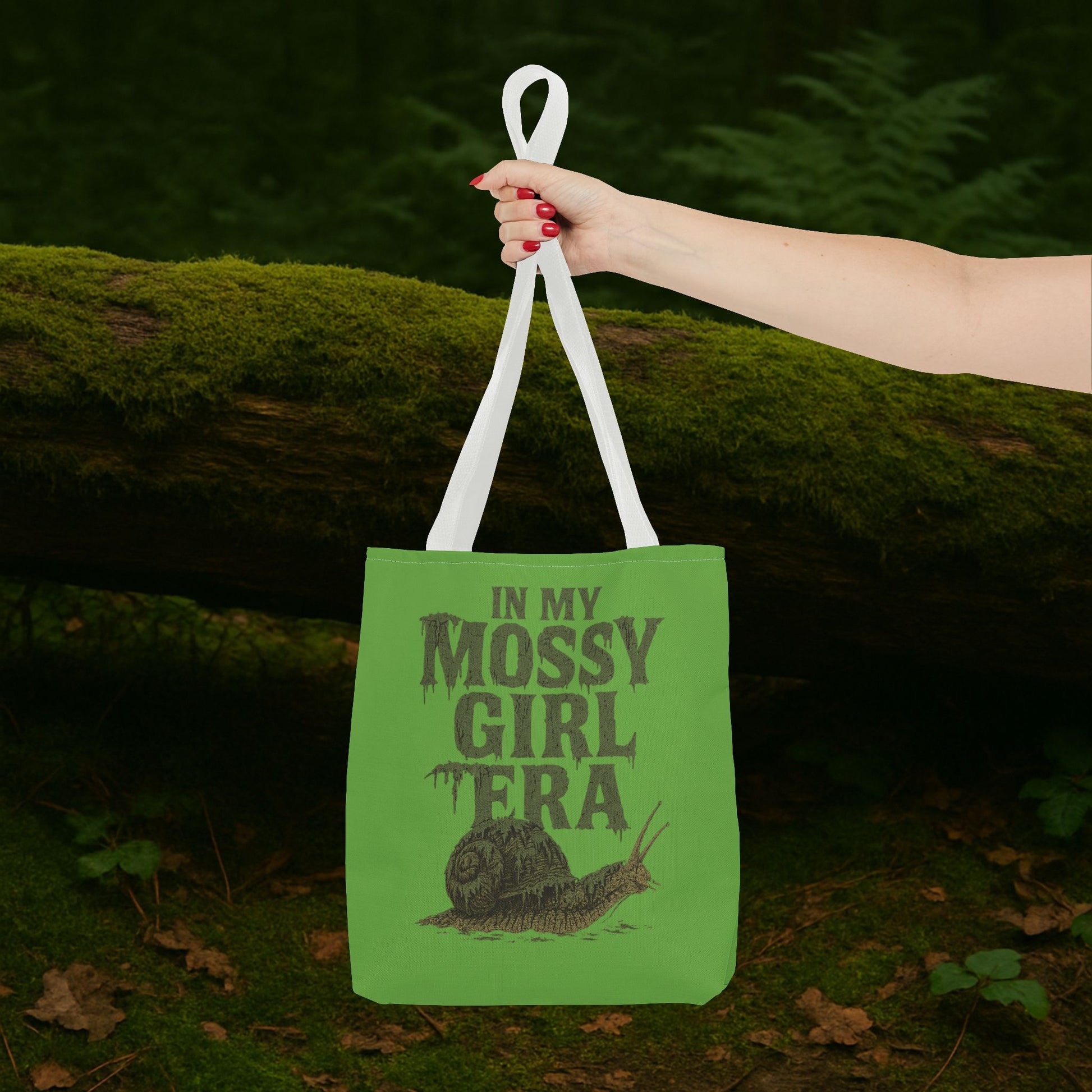 The In My Mossy Girl Era Tote is made for the ones who move gently through the world & carry a little woodland calm wherever they go. Featuring the signature mossy text paired with a tiny wandering snail, this tote is a quiet reminder to slow down, stay soft & fully embrace your moss era.