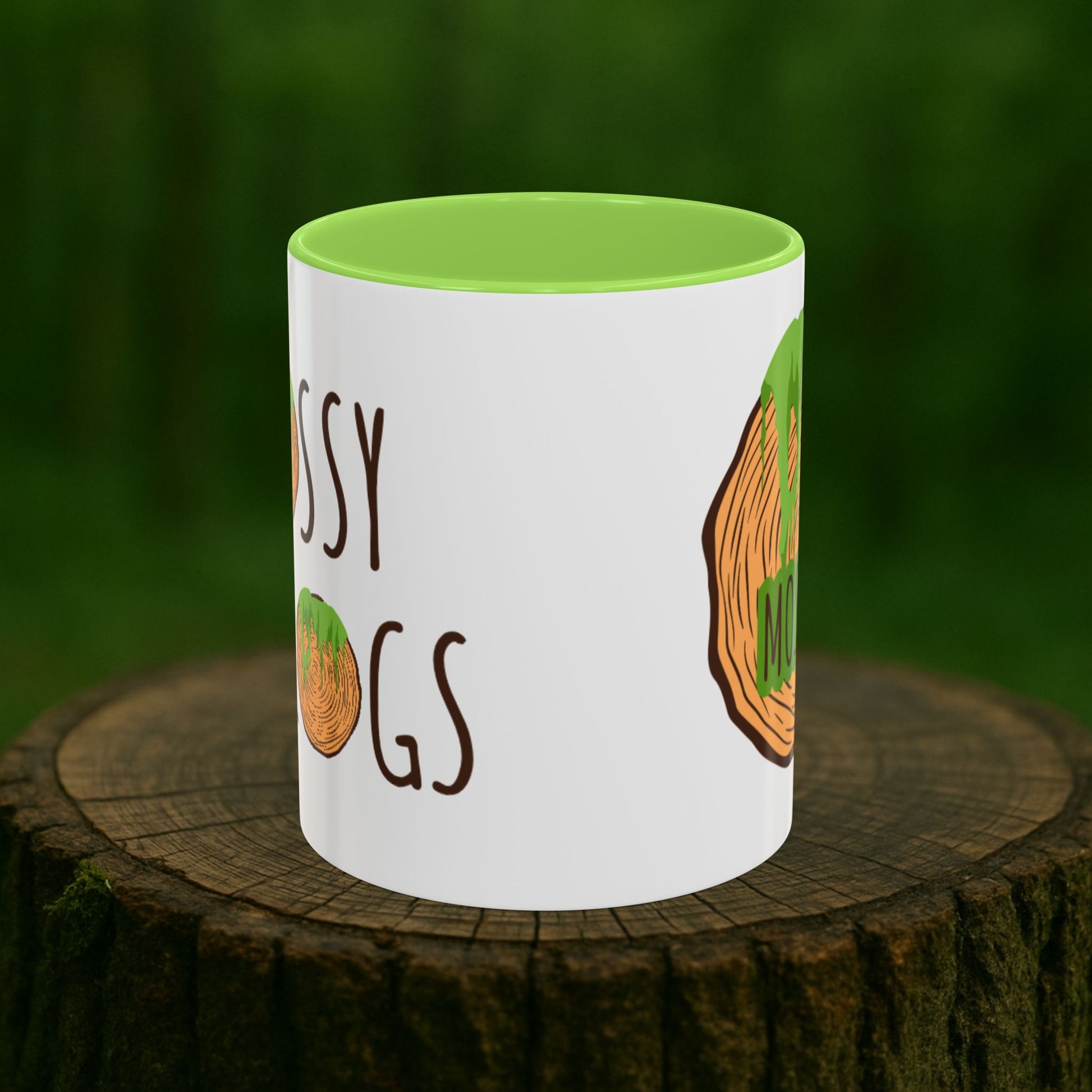 Crafted from glossy ceramic, it comes in two sizes (11oz & 15oz) with a rich green handle & matching interior. The circular Mossy Logs logo sits on one side, with the text logo on the other — a soft, grounded pairing that feels like home. It’s more than a mug — it’s a piece of your mossy story.